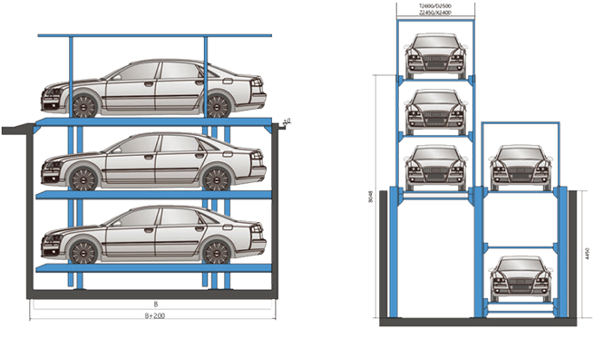 升降橫移類機械式停車設備是停車行業應用廣泛的一類停車產品,型式比較多,并且可以采用地面上結合基坑的形式,此類設備對場地的適應性較強,對土建要求較低,可建在露天,也可建在大樓的地下。規??纱罂尚?,可根據不同的地形和空間進行任意組合、排列,空間利用率高,設備穩定可靠,存取車快捷,使用維護簡便,價格較低。